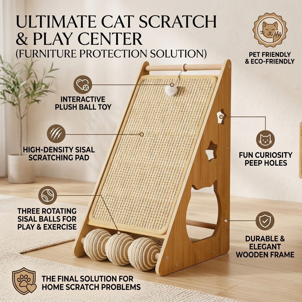 Brinyko Premium Cactus Sisal Cat Scratcher: Heavy-Duty Vertical Scratching Post, Mess-Free & Long-Lasting Interactive Toy for Cats